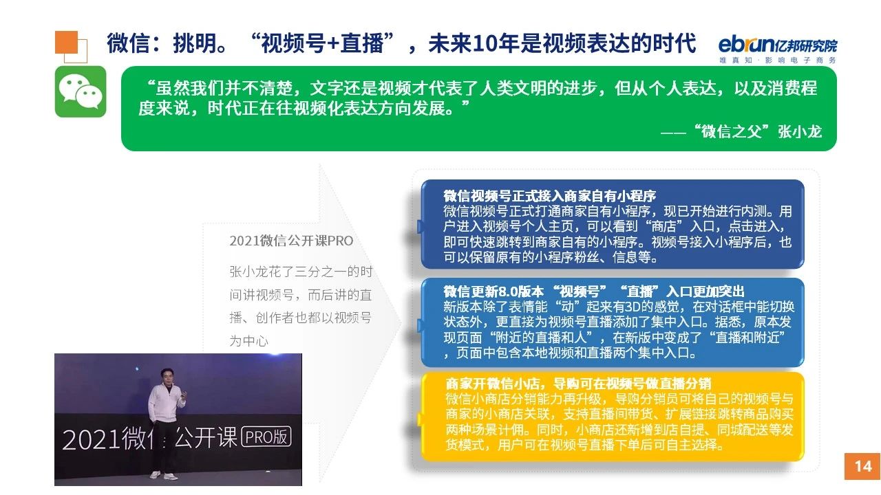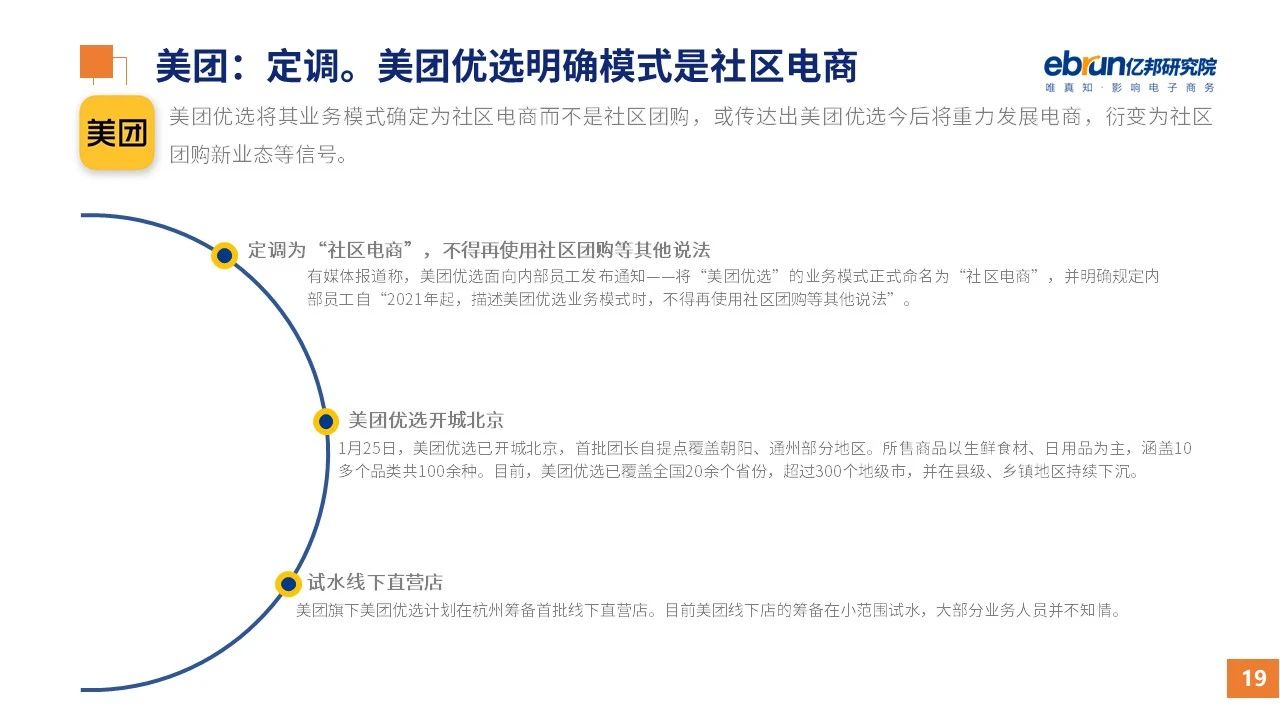 縱觀2021年1月,各平臺豐富自有生態(tài)布局,如淘寶直播(點淘)加入短視頻模式、騰訊重押視頻號、快手加碼電商和小程序、抖音推出支付等;視頻內(nèi)容成為各平臺未來重點發(fā)力方向;“九不得”新規(guī)發(fā)布后社區(qū)團購仍熱情不減;國家和市場對互聯(lián)網(wǎng)巨頭和電商相關(guān)消費加大監(jiān)管力度……你信和不信,你知道和不知道的,都在這份億邦動力研究院正式發(fā)布的